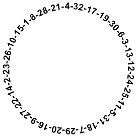 Les nombres 1 à 32 sont disposés en cercle de façon que la somme de TOUT couple de deux nombres adjacents soit égale à un nombre carré ... vraiment magique!!!